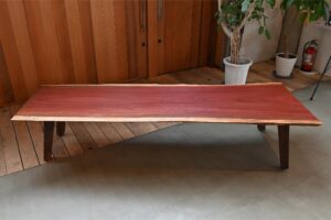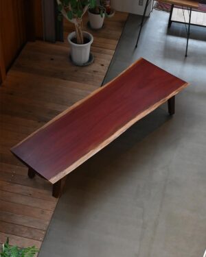 パープルハートは、その名の通り深みのある紫色が特徴です。一般的な座卓よりも細身のシルエットに仕上げることで、空間に圧迫感を与えることなく、洗練された優美な存在感を放ちます。